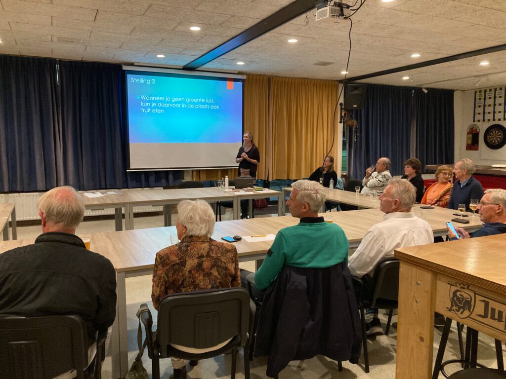 Eenmaal de glazen gevuld was het tijd voor een lezing over “Gezonde voeding voor sportende ouderen” door Floor de Vries, voedingskundige/diëtiste uit Leersum.