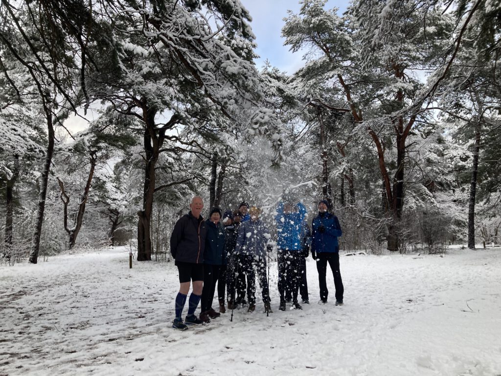 Wat deze training zo bijzonder maakte was het dikke pak sneeuw dat er ’s nachts was gevallen. Geen grondoefeningen maar lekker stampen in de knipperende verse sneeuw.