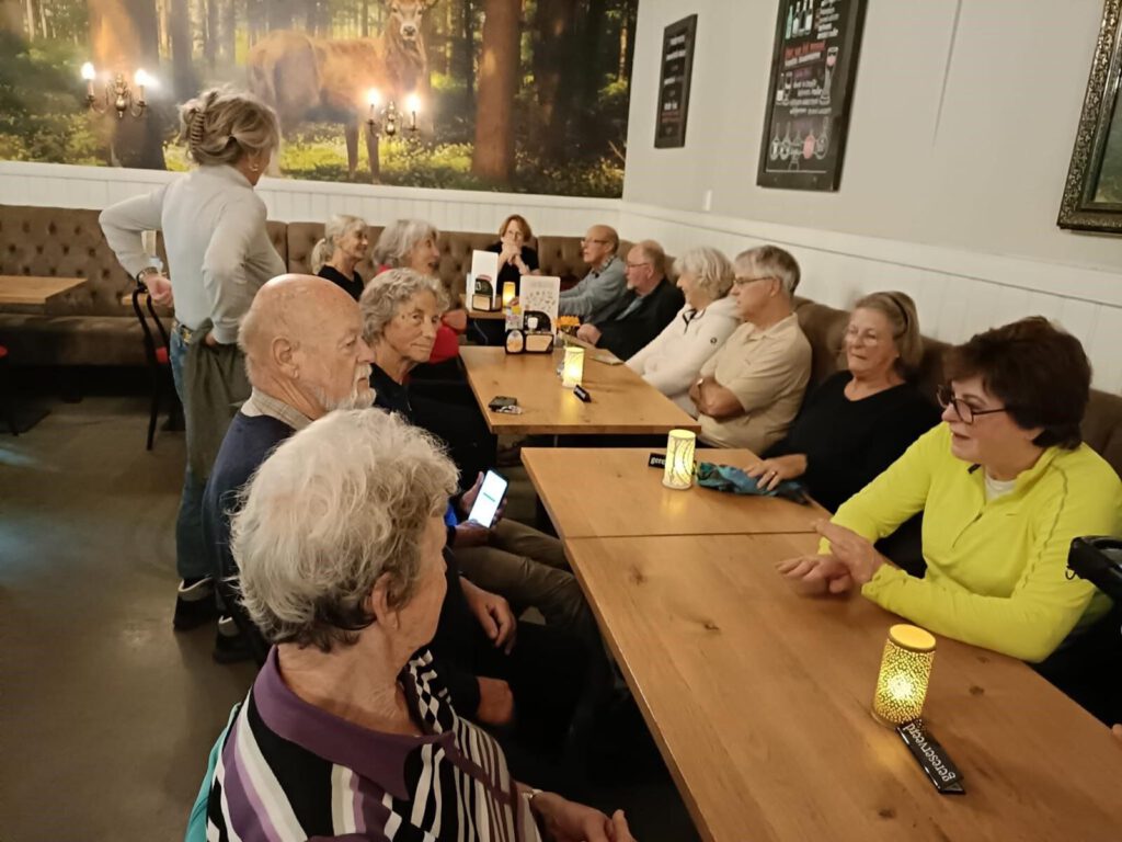 Bij Het Wapen van Sandenburg wachtte een welverdiende pauze. Op het terras genoten we van geurige koffie en een royale punt appeltaart – een echt hoogtepunt van de tocht. Daarna volgden we een prachtige route richting Doorn, waar het landschap geleidelijk veranderde. De paden werden smaller en het terrein begon te golven, met lichte stijgingen en dalingen die het wandelen net wat pittiger maakten.